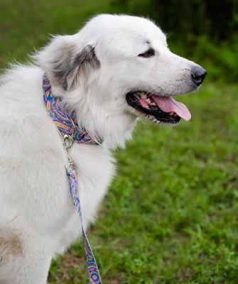 Is your escape artist slipping out of their collar? Martingale collars are designed to prevent your pup from pulling out of their collar by tightening around your dog’s neck whenever they try to remove their heads. Once your dog quits pulling, the collar relaxes again. Perfect for training, the twin-loop design gives you control over your stroll. The martingale collar is often referred to as a humane choke collar because it naturally limits how much it tightens, ensuring your dog’s safety. A no-slip, adjustable, limited choke collar is an excellent solution for sighthounds who slip out of their collars.Show your fashionista side with a 1 1/2 inch Blue Boho Mandala Martingale Dog Collar. This far out 1 1/2 Inch Martingale Dog Collar features funky color combinations that’ll show your pet’s chill nature. Bursts of blue flow throughout while numerous other vivid colors compliment the design. Printed using state-of-the-art colorfast inks, our collars will not run or bleed. Crafted from industry-leading hardware and webbing, Country Brook Petz’ 1 1/2 Inch Blue Boho Mandala Martingale Dog Collars stand up under tough conditions, all while keeping your furry friend looking fab.By adjusting the metal slide, you give slack to the loop. Slip it over your dog’s neck and decrease size until you can comfortably slip only two fingers under the collar. The unique limited closure prevents the choke from becoming too tight. We at Country Brook Petz pride ourselves on only using the best hardware, and you can rest assured that these collars will withstand whatever your pup gets into. Our collars have wide-mouthed heavy-duty triglides for easy adjustment and heavy-welded D-rings for strength.