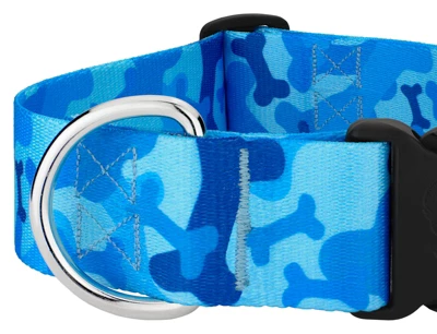 Are you bone tired of all the other camo prints out there? Well, Country Brook Petz has their own ”bad to the bone” design that will compliment your camouflaged pup. Contrasting shades of blue highlight the bone accents perfectly while giving you a unique composition of design.At the heart of this exceptional collar lies our premium polyester webbing, a high-strength and resilient material known for its remarkable durability. Whether your dog is a spirited explorer or a playful companion, this collar can withstand the test of time and keep up with their boundless energy.The sleek and smooth texture of the polyester webbing ensures a gentle touch against your dog’s neck, eliminating any discomfort or irritation. Your loyal companion will revel in the luxurious comfort that this collar provides, allowing them to strut their stuff with unmatched confidence.To further elevate the collar’s functionality, we constructed it with YKK brand buckles, renowned for their exceptional quality and reliability. These buckles are not only stylish but also incredibly secure, giving you peace of mind knowing that your furry friend is always safe and sound.The YKK brand buckles are engineered with precision, featuring a seamless interlocking mechanism that guarantees a secure fit. They are easy to use and offer a hassle-free experience, allowing you to fasten and release the collar with a simple snap effortlessly. Whether you’re preparing for a leisurely stroll or an exciting outdoor adventure, this collar ensures quick and convenient handling.Besides its undeniable elegance, our Deluxe Dog Collar is also equipped with a sturdy welded D-ring for easy leash attachment. This feature guarantees a seamless transition from playtime to outdoor walks, allowing you to maintain control without compromising on style or comfort.Indulge your furry friend in the opulence they deserve with our Deluxe Dog Collar. From the premium polyester webbing to the renowned YKK brand buckles, every aspect of this collar is a testament to superior craftsmanship and unparalleled quality made right here in America. Give your loyal companion the gift of comfort and style, and watch them turn heads wherever they go.