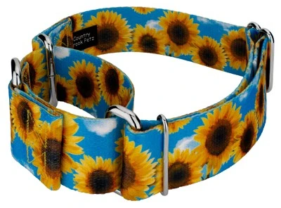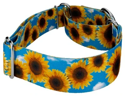 - SUNFLOWERS | Sunflowers 1 1/2 Inch Martingale Dog Collar is a Summer inspired design featuring gorgeous sunflowers on a bright blue background with puffy clouds.