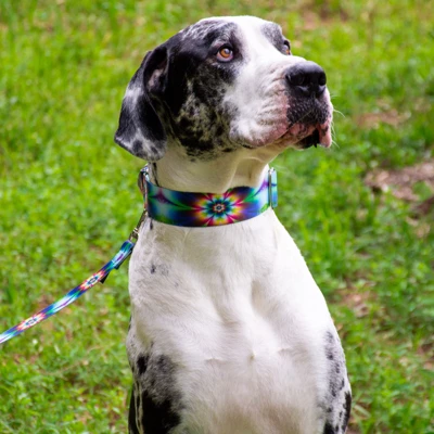 - TIE DYE FLOWERS | This 1 1/2 Inch Tie Dye Flowers Martingale Dog Collar features a glowing floral design in a wave like pattern.