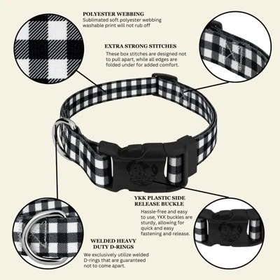 Celebrate the holiday season with this festive collection of Christmas Deluxe Dog Collars.At the heart of this exceptional collar lies our premium polyester webbing, a high-strength and resilient material known for its remarkable durability. Whether your dog is a spirited explorer or a playful companion, this collar can withstand the test of time and keep up with their boundless energy.The sleek and smooth texture of the polyester webbing ensures a gentle touch against your dog’s neck, eliminating any discomfort or irritation. Your loyal companion will revel in the luxurious comfort that this collar provides, allowing them to strut their stuff with unmatched confidence.To further elevate the collar’s functionality, we constructed it with YKK brand buckles, renowned for their exceptional quality and reliability. These buckles are not only stylish but also incredibly secure, giving you peace of mind knowing that your furry friend is always safe and sound.The YKK brand buckles are engineered with precision, featuring a seamless interlocking mechanism that guarantees a secure fit. They are easy to use and offer a hassle-free experience, allowing you to fasten and release the collar with a simple snap effortlessly. Whether you’re preparing for a leisurely stroll or an exciting outdoor adventure, this collar ensures quick and convenient handling.Besides its undeniable elegance, our Deluxe Dog Collar is also equipped with a sturdy welded D-ring for easy leash attachment. This feature guarantees a seamless transition from playtime to outdoor walks, allowing you to maintain control without compromising on style or comfort.Please note that while the Extra Small, 2XS, and 3XS sizes may seem delicate, they are still reliable with an impressive 700 lb. tensile strengthIndulge your furry friend in the opulence they deserve with our Deluxe Dog Collar. From the premium polyester webbing to the renowned YKK brand buckles, every aspect of this collar is a testament to superior craftsmanship and unparalleled quality made right here in America. Give your loyal companion the gift of comfort and style, and watch them turn heads wherever they go.