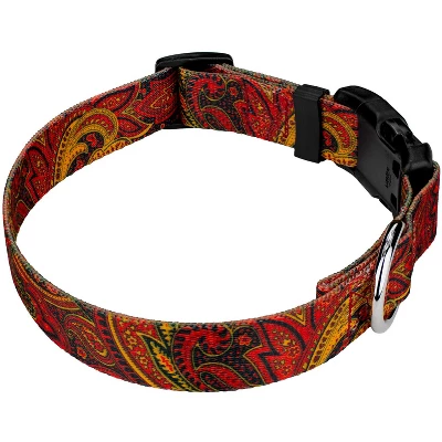 Country Brook Petz’ Fire Paisley Deluxe Dog Collar & Leash is here to bring you the traditional print of paisley with vivid colors that make everything pop. This ornamental, Persian inspired design features a smooth floral-like pattern, flowing lines, and complementary colors that will contrast against your applications; this classic composition will be a hot item for all-year-round use. Printed using our colorfast dye, there are no runs or bleeding onto your pupper. Made from superior hardware and webbing, Country Brook Petz’ Fire Paisley Deluxe Dog Collar & Leash will provide you with a sense of ease when using our products.This Fire Paisley collar and leash set are uniquely designed and have a silky smooth polyester loop that slips over your hand, giving you a comfortable grip while walking your pet. Box stitching ensures strength for when your pup pulls against their leash. These collars and leashes are washable, with mild detergent, and dry when laid out.The Extra Small, Mini and Micro are still reliable with a 700 lb. tensile strength, even though they may seem delicate.We know that you want the best for your pets, that’s why we make all of our products here in the United States. Equipped with wide-mouthed, heavy-duty triglides for easy adjustment, and heavy-welded d-rings for your dog’s security. Leashes are constructed with high grade snap hooks and polyester that ensures your puppy won’t break the leash. Walk your pup with confidence knowing that Country Brook Petz has you in mind when creating our products. Style isn’t all we have going for our collars and leashes!Country Brook Design cannot be held responsible for misuse of this product. It is the responsibility of the purchaser to determine the suitability of the product for their use.