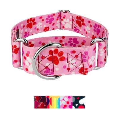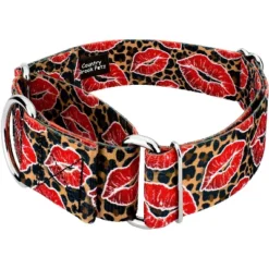 Is your escape artist slipping out of their collar? Martingale collars are designed to prevent your pup from pulling out of their collar by tightening around your dog’s neck whenever they try to remove their heads. Once your dog quits pulling, the collar relaxes again. Perfect for training, the twin-loop design gives you control over your stroll. The martingale collar is often referred to as a humane choke collar because it naturally limits how much it tightens, ensuring your dog’s safety. A no-slip, adjustable, limited choke collar is an excellent solution for sighthounds who slip out of their collars.Various Hearts and Valentines prints to keep your pet feeling the love. Printed using state-of-the-art colorfast inks, our collars will not run or bleed. Crafted from industry-leading hardware and webbing, Country Brook Petz’ 1 1/2 Inch Affection Collection of Martingale Dog Collars stand up under tough conditions, all while keeping your furry friend looking fab.By adjusting the metal slide, you give slack to the loop. Slip it over your dog’s neck and decrease size until you can comfortably slip only two fingers under the collar. The unique limited closure prevents the choke from becoming too tight. We at Country Brook Petz pride ourselves on only using the best hardware, and you can rest assured that these collars will withstand whatever your pup gets into. Our collars have wide-mouthed heavy-duty triglides for easy adjustment and heavy-welded D-rings for strength.Country Brook Design cannot be held responsible for misuse of this product. It is the responsibility of the purchaser to determine the suitability of the product for their use.