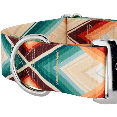 Multiple styles of geometric and linear patterns that are perfect for any occasion.At the heart of this exceptional collar lies our premium polyester webbing, a high-strength and resilient material known for its remarkable durability. Whether your dog is a spirited explorer or a playful companion, this collar can withstand the test of time and keep up with their boundless energy.The sleek and smooth texture of the polyester webbing ensures a gentle touch against your dog’s neck, eliminating any discomfort or irritation. Your loyal companion will revel in the luxurious comfort that this collar provides, allowing them to strut their stuff with unmatched confidence.To further elevate the collar’s functionality, we constructed it with YKK brand buckles, renowned for their exceptional quality and reliability. These buckles are not only stylish but also incredibly secure, giving you peace of mind knowing that your furry friend is always safe and sound.The YKK brand buckles are engineered with precision, featuring a seamless interlocking mechanism that guarantees a secure fit. They are easy to use and offer a hassle-free experience, allowing you to fasten and release the collar with a simple snap effortlessly. Whether you’re preparing for a leisurely stroll or an exciting outdoor adventure, this collar ensures quick and convenient handling.Besides its undeniable elegance, our Deluxe Dog Collar is also equipped with a sturdy welded D-ring for easy leash attachment. This feature guarantees a seamless transition from playtime to outdoor walks, allowing you to maintain control without compromising on style or comfort.Indulge your furry friend in the opulence they deserve with our Deluxe Dog Collar. From the premium polyester webbing to the renowned YKK brand buckles, every aspect of this collar is a testament to superior craftsmanship and unparalleled quality made right here in America. Give your loyal companion the gift of comfort and style, and watch them turn heads wherever they go.