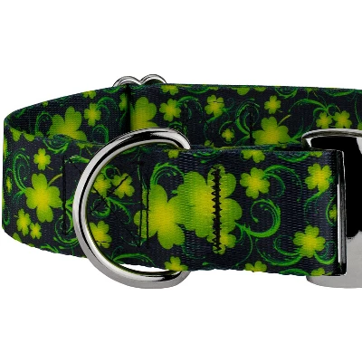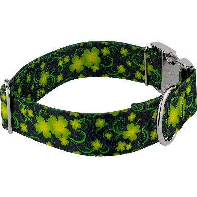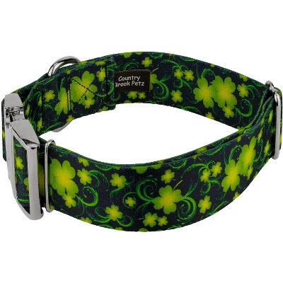 We have your gold at the end of the rainbow with Country Brook Petz’ Irish Pride Collection of 1 1/2 Inch Premium Dog Collar! These festive prints encaptures the spirit of Irish tradition with beautiful designs. Created using vibrant colors, these prints will have you feeling lucky.Crafted with care and attention to detail, our classy premium line of collars are for canines who need to look fabulous both at home and at the dog park. It starts with the highest quality 100% polyester webbing that is both soft and strong. This means the collar will feel like a hug whenever your dog wears it, but it also provides long-lasting durability to withstand everyday adventures.The collar features a brilliant aluminum side-release buckle with a mirror-like finish, allowing easy and secure fastening. The sturdy welded D-ring provides a convenient attachment point for your dog’s leash, ensuring a safe and controlled walking experience.Country Brook Petz’ premium patterned collars are vibrant, comfortable collars made right here in the U.S.A. Our carefully curated sewing professionals have decades of combined experience and ensure that every collar is meticulously inspected for quality craftsmanship. With an array of eye-catching patterns, you can showcase your dog’s unique personality and style. From trendy florals to playful geometric designs, there’s a pattern to suit every taste and preference.Country Brook Design cannot be held responsible for misuse of this product. It is the responsibility of the purchaser to determine the suitability of the product for their use.