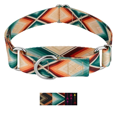 Is your escape artist slipping out of their collar? Martingale collars are designed to prevent your pup from pulling out of their collar by tightening around your dog’s neck whenever they try to remove their heads. Once your dog quits pulling, the collar relaxes again. Perfect for training, the twin-loop design gives you control over your stroll. The martingale collar is often referred to as a humane choke collar because it naturally limits how much it tightens, ensuring your dog’s safety. A no-slip, adjustable, limited choke collar is an excellent solution for sighthounds who slip out of their collars.Multiple styles of geometric and linear patterns that are perfect for any occasion. Printed using state-of-the-art colorfast inks, our collars will not run or bleed. Crafted from industry-leading hardware and webbing, Country Brook Petz’ Chevrons and Arrows Collection of Martingale Dog Collars stand up under tough conditions, all while keeping your furry friend looking fab.By adjusting the metal slide, you give slack to the loop. Slip it over your dog’s neck and decrease size until you can comfortably slip only two fingers under the collar. The unique limited closure prevents the choke from becoming too tight. We at Country Brook Petz pride ourselves on only using the best hardware, and you can rest assured that these collars will withstand whatever your pup gets into. Our collars have wide-mouthed heavy-duty triglides for easy adjustment and heavy-welded D-rings for strength.Country Brook Design cannot be held responsible for misuse of this product. It is the responsibility of the purchaser to determine the suitability of the product for their use.