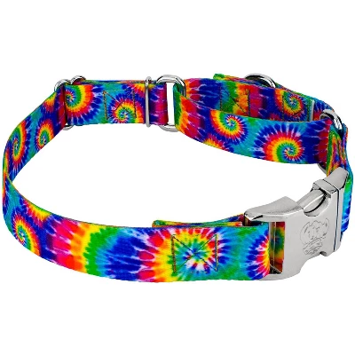 Is your escape artist slipping out of their collar? Martingale collars are designed to prevent your pup from pulling out of their collar by tightening around your dog’s neck whenever they try to remove their heads. Once your dog quits pulling, the collar relaxes again. Perfect for training, the twin-loop design gives you control over your stroll. The martingale collar is often referred to as a humane choke collar because it naturally limits how much it tightens, ensuring your dog’s safety. A no-slip, adjustable, limited choke collar is an excellent solution for sighthounds who slip out of their collars.Get your free spirit on with our Groovy Collection of Martingale Dog Collar with Premium Buckle. These far out products feature funky color combinations that’ll show your pet’s chill nature. Made strong enough to endure whatever Bonnaroo throws their way, our material sports a soft to the touch feel all while boasting a vibrant print. Printed using state-of-the-art colorfast inks, our collars will not run or bleed. Crafted from industry-leading hardware and webbing, Country Brook Petz’ Groovy Collection of Martingale with Premium Buckle Dog Collars stands up under tough conditions, all while keeping your furry friend looking fab.By adjusting the metal slide, you give slack to the loop. The unique limited closure prevents the choke from becoming too tight. We at Country Brook Petz pride ourselves on only using the best hardware, and you can rest assured that these collars will withstand whatever your pup gets into. Our collars have wide-mouthed, heavy-duty triglides for easy adjustment and heavy-welded D-rings for strength.Country Brook Design cannot be held responsible for misuse of this product. It is the responsibility of the purchaser to determine the suitability of the product for their use.