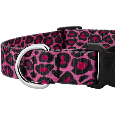Your pup will be pretty in pink with this Pink Leopard Print Deluxe Dog Collar. Featuring bright pops of fuchsia and black against a light pink background, this pattern is fun and trendy.At the heart of this exceptional collar lies our premium polyester webbing, a high-strength and resilient material known for its remarkable durability. Whether your dog is a spirited explorer or a playful companion, this collar can withstand the test of time and keep up with their boundless energy.The sleek and smooth texture of the polyester webbing ensures a gentle touch against your dog’s neck, eliminating any discomfort or irritation. Your loyal companion will revel in the luxurious comfort that this collar provides, allowing them to strut their stuff with unmatched confidence.To further elevate the collar’s functionality, we constructed it with YKK brand buckles, renowned for their exceptional quality and reliability. These buckles are not only stylish but also incredibly secure, giving you peace of mind knowing that your furry friend is always safe and sound.The YKK brand buckles are engineered with precision, featuring a seamless interlocking mechanism that guarantees a secure fit. They are easy to use and offer a hassle-free experience, allowing you to fasten and release the collar with a simple snap effortlessly. Whether you’re preparing for a leisurely stroll or an exciting outdoor adventure, this collar ensures quick and convenient handling.Besides its undeniable elegance, our Deluxe Dog Collar is also equipped with a sturdy welded D-ring for easy leash attachment. This feature guarantees a seamless transition from playtime to outdoor walks, allowing you to maintain control without compromising on style or comfort.Please note that while the Extra Small, 2XS, and 3XS sizes may seem delicate, they are still reliable with an impressive 700 lb. tensile strengthIndulge your furry friend in the opulence they deserve with our Deluxe Dog Collar. From the premium polyester webbing to the renowned YKK brand buckles, every aspect of this collar is a testament to superior craftsmanship and unparalleled quality made right here in America. Give your loyal companion the gift of comfort and style, and watch them turn heads wherever they go.