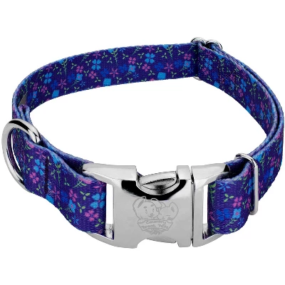 Take in the sweet smells of Summertime with our Blueberry Fields Premium Dog Collar! These tranquil blue shades will have you reminiscing about picking blueberries on a warm summer day. You’ll experience a sense of bliss with Country Brook Petz’ Premium Dog Collar. Printed using our colorfast dye, our collars will not run or bleed. Created from superior hardware and webbing, Country Brook Petz’ Premium Dog Collars will not only provide your pup with a trendy collar, but will give you a sense of ease when using our products. Country Brook Petz’ premium patterned collars are vibrant, comfortable collars made right here in the U.S.A. These collars are constructed using strong polyester webbing, dependable metal side release buckles that feature a brilliant mirror finish, heavy-duty wide-mouthed triglides, and heavy welded D-rings. Our polyester collars are ribbed, soft, and sleek to the touch with a little bit of a sheen. Country Brook makes all their collars after the order has been placed. However, rest assured as your collar will ship within two business days of receiving payment.We want your furbaby to be able to show the world their new collar immediately, so be sure to measure for the right size. You can check this out by using a string, or tape measure, to see where the collar will fit snugly and comfortably on your dog’s neck. These stylish prints work well with both boy and girl puppers.
