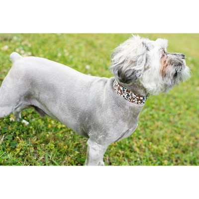 MOOOOOOVE over for our new Premium Cow Print Dog Collar. Featuring an adorable brown spotted cowhide print, this design will bring you straight to the farm! Printed using our colorfast dye, our collars will not run or bleed. Created from superior hardware and webbing, Country Brook Petz’ Premium Dog Collars will not only provide your pup with a trendy collar, but will give you a sense of ease when using our products.Country Brook Petz’ premium patterned collars are vibrant, comfortable collars made right here in the U.S.A. These collars are constructed using strong polyester webbing, dependable metal side release buckles that feature a brilliant mirror finish, heavy-duty wide-mouthed triglides, and heavy welded D-rings. Our polyester collars are ribbed, soft, and sleek to the touch with a little bit of a sheen. Country Brook makes all their collars after the order has been placed. However, rest assured as your collar will ship within two business days of receiving payment.We want your furbaby to be able to show the world their new collar immediately, so be sure to measure for the right size. You can check this out by using a string, or tape measure, to see where the collar will fit snugly and comfortably on your dog’s neck. These stylish prints work well with both boy and girl puppers.