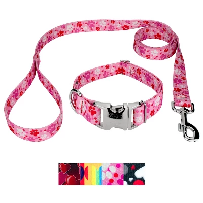 Various Hearts and Valentines prints to keep your pet feeling the love. Printed using our colorfast dye, our collars will not run or bleed. Created from superior hardware and webbing, Country Brook Petz’ Premium Dog Collar and Leash will not only provide your pup with a trendy collar, but will give you a sense of ease when using our products. When you order this dog collar and leash set, you will receive a premium collar and a matching leash; collar size of your choice with an accompanying 6 foot leash.These collar and leash sets are uniquely designed and have a silky smooth polyester loop that slips over your hand, giving you a comfortable grip while walking your pet; box stitching ensures strength for when your pup pulls against their leash. These collars and leashes are washable, with mild detergent, and dry when laid out. Country Brook Petz’ premium patterned collars are vibrant, comfortable collars made right here in the U.S.A. These collars are constructed using strong polyester webbing, dependable metal side release buckles that feature a brilliant mirror finish, heavy-duty wide-mouthed triglides, and heavy welded D-rings.We want your furbaby to be able to show the world their new collar immediately, so be sure to measure for the right size. You can check this out by using a string, or tape measure, to see where the collar will fit snugly and comfortably on your dog’s neck. These stylish prints work well with both boy and girl puppers.Country Brook Design cannot be held responsible for misuse of this product. It is the responsibility of the purchaser to determine the suitability of the product for their use.