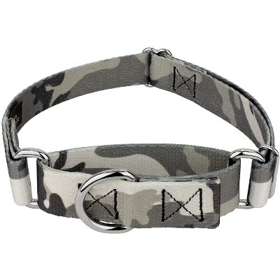 Go undercover in plain sight with Country Brook Petz’ Urban Camo Martingale Dog Collar. A black, white, and gray camo combo produces a grayscale version of the classic Woodland print pattern. Used by militaries around the world for its domestic camouflage cover, this design is ideal where you need cover in industrial areas. Printed using our colorfast dye, there are no runs or bleeding onto your pupper. Made from superior hardware and webbing, Country Brook Petz’ Urban Camo Martingale Dog Collar will provide you with not only trendy pup attire, but a sense of ease when using our products. Is your good boy or girl slipping out of their collar? Well, our martingale collars are designed to prevent your pup from pulling out of their collar by tightening around your dog’s neck whenever they try to remove their heads. Once Fido quits pulling, the collar relaxes against their neck. Perfect for training, the twin loop design gives you control over your stroll. The martingale collar is often referred to as a humane choke collar. A no-slip, adjustable-choke collar is an excellent solution for sighthounds who slip out of their collars. The Extra Small, Mini and Micro are still reliable with a 700 lb. tensile strength, even though they may seem delicate.By adjusting the metal slide, you give slack to the loop. Slip it over your dog’s neck and decrease size until you can comfortably slip only a couple of fingers under the collar. The unique limited closure prevents the choke from becoming too tight. We at Country Brook Petz pride ourselves on only using the best hardware and you can rest assured that these collars will withstand whatever your pup brings its way. Our collars have wide-mouthed heavy-duty triglides for easy adjustment and heavy-welded D-rings for strength. Designed to give you back control while your pup is leashed.