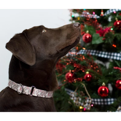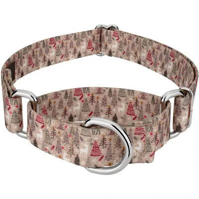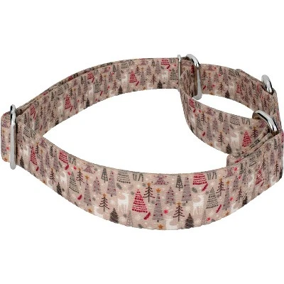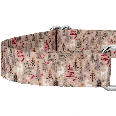 Take a stroll through the snowy trail with this Woodland Christmas Martingale Dog Collar. The shades of brown and white give a vintage vibe, while the pops of red make it more traditional. The tall trees are staggered about , while the curious white deer stampers through the forest. Printed using our colorfast dye, our collars will not run or bleed. Created from superior hardware and webbing, Country Brook Petz’ Woodland Christmas Martingale Dog Collars will not only provide your pup with a trendy collar, but will give you a sense of ease when using our products.Is your good boy or girl slipping out of their collar? Well, our martingale collars are designed to prevent your pup from pulling out of their collar by tightening around your dog’s neck whenever they try to remove their heads. Once Fido quits pulling, the collar relaxes against their neck. Perfect for training, the twin loop design gives you control over your stroll. The martingale collar is often referred to as a humane choke collar. A no-slip, adjustable-choke collar is an excellent solution for sighthounds who slip out of their collars.The Extra Small, Mini and Micro are still reliable with a 700 lb. tensile strength, even though they may seem delicate.By adjusting the metal slide, you give slack to the loop. Slip it over your dog’s neck and decrease size until you can comfortably slip only a couple of fingers under the collar. The unique limited closure prevents the choke from becoming too tight. We at Country Brook Petz pride ourselves on only using the best hardware and you can rest assured that these collars will withstand whatever your pup brings its way. Our collars have wide-mouthed heavy-duty triglides for easy adjustment and heavy-welded D-rings for strength. Designed to give you back control while your pup is leashed.